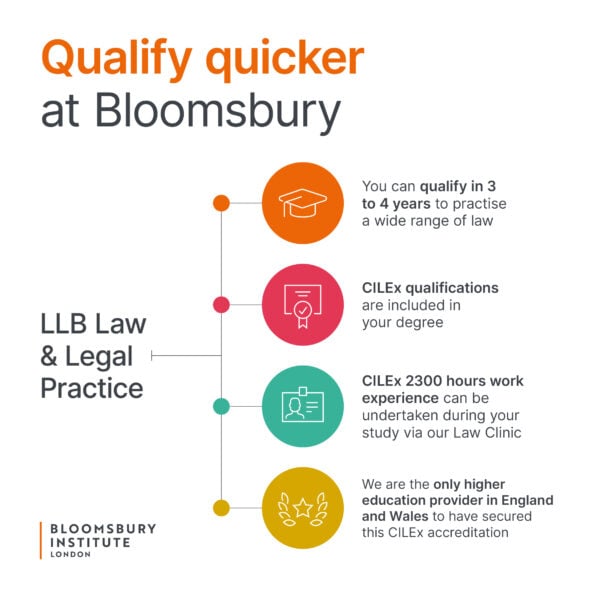 Uniquely, graduates from Bloomsbury Institute’s LLB Law and Legal Practice course also meet CILEx Regulation standards, but how does this help you qualify quicker?